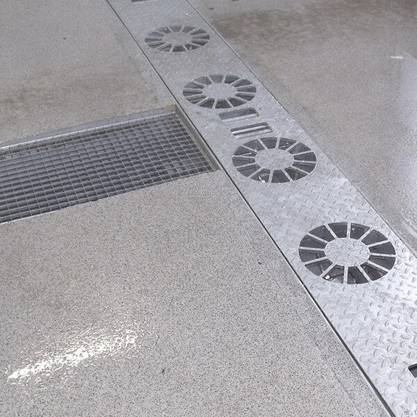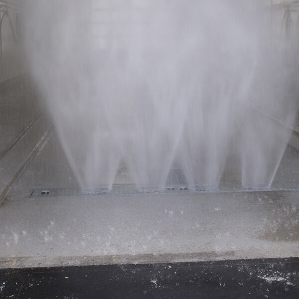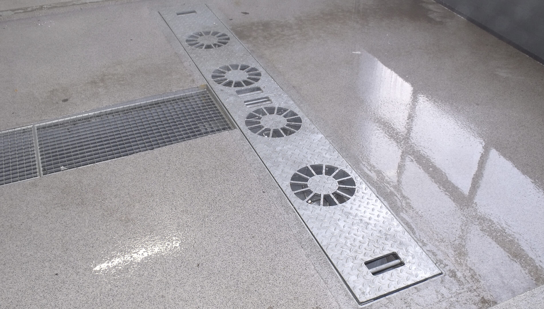 Stationary installation frame with 4 hydraulically driven high-pressure heads to clean the underbody of cars, busses, trucks, vans and other vehicles. The cleaning of the surfaces is optimized by the rotating heads. Automatic activation by light barrier or inductive loop.