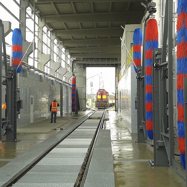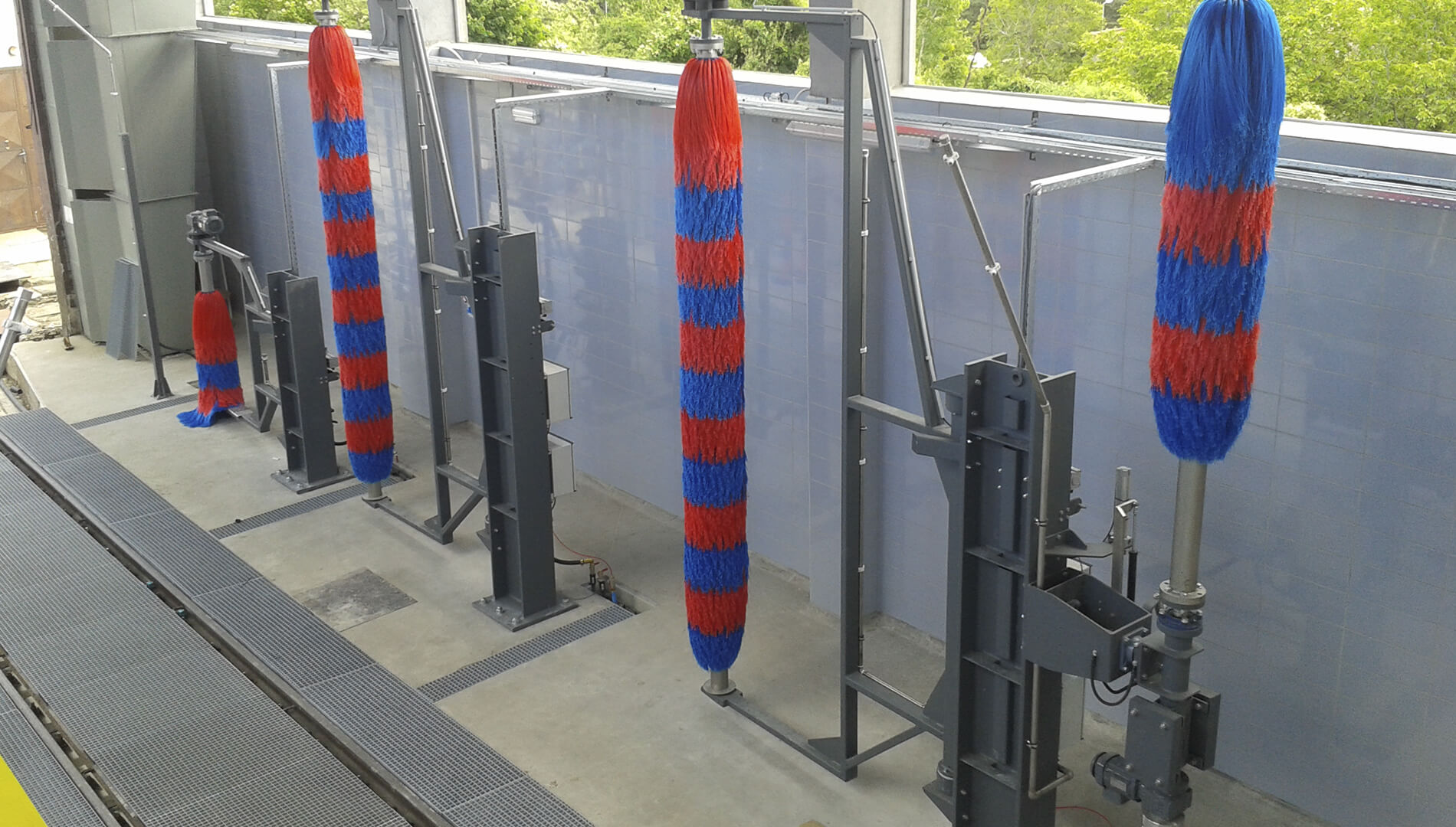 Washes the lateral-, the skirt surfaces and the edge areas of the roof fast and careful. The swivel and automatic avoiding brushes guarantee a gentle washing of the vehicle surfaces without risk of damage. The vehicle drives under its own power through the washing system.