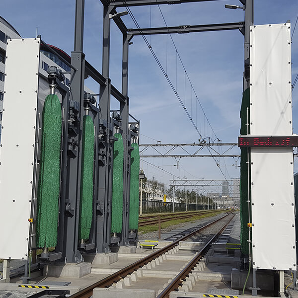 The construction of the washing system is so laid out that the vehicles can be washed during
