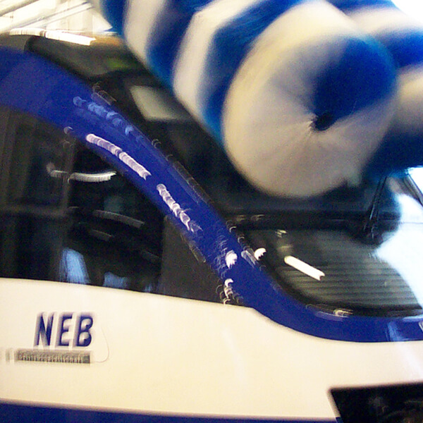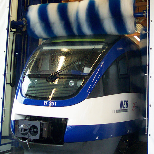 Trams, busses, trucks and transporter as well as trains became washed all-automatic, fast,
