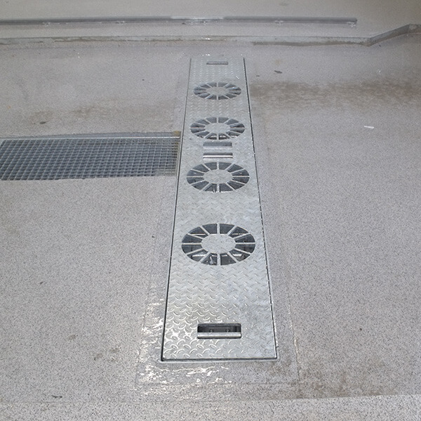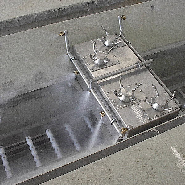stationary underbody washing with 27 flat spray nozzles