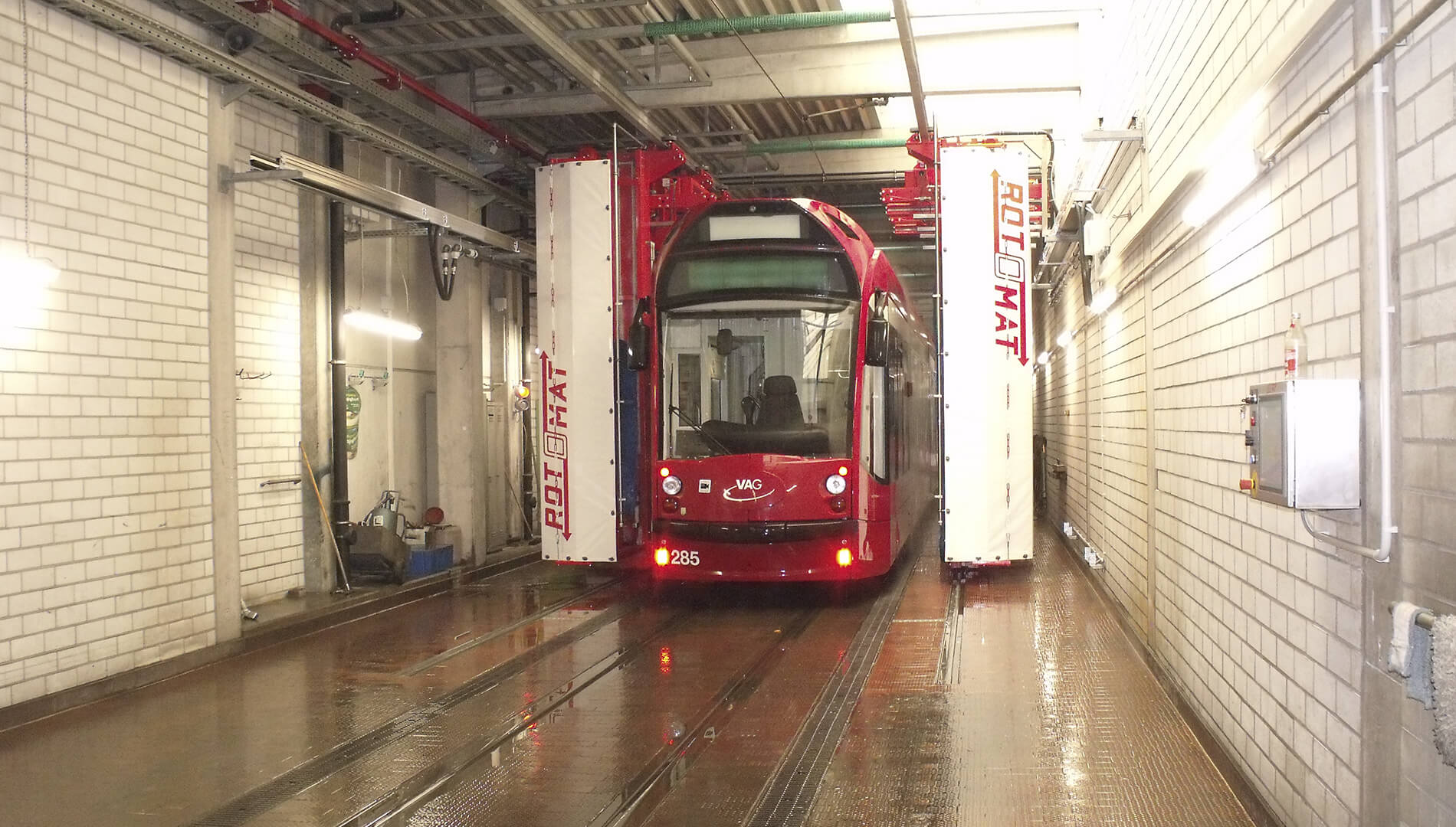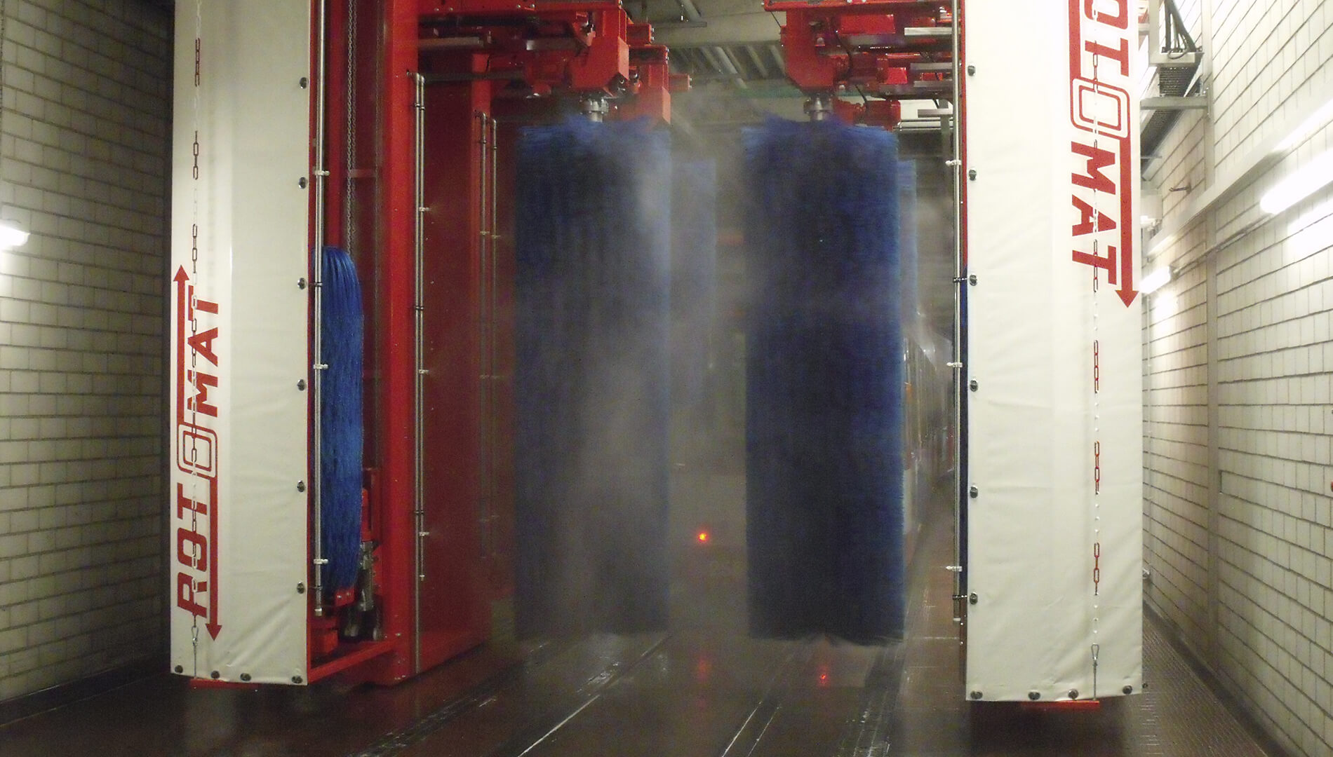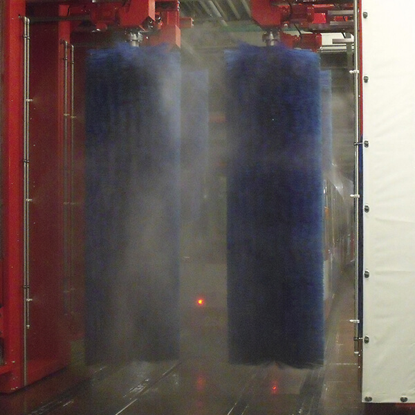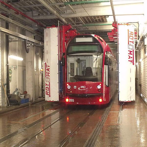 Straßenbahnen, Omnibusse, LKW's ,Transporter und PKW oder auch Züge vollautomatisch, schnell, schonend und gründlich. Die Seitenbürsten und Dachbürsten bestehen aus einzeln auswechselbaren Bürstensegmenten mit weichen PE-X Bürsten.