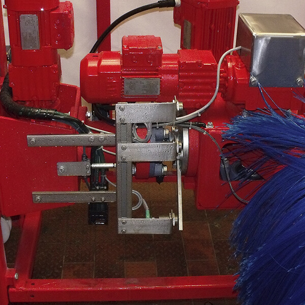 • Hubeinrichtung an den Seitenbürsten für die automatische Umfahrung der Kupplung bei Straßenbahnen und Zügen